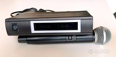Vendo causa inutilizzo questo sistema radiomicrofonico vhf composto da 1 ricevitore con doppia antenna e da 1 trasmettitori palmare a gelato. Purtroppo l'altro microfono si è rotto dopo 1 mese e quindi è rimasto solo questo purtroppo. Completo di guida d'uso e cavo di connessione jack/jack da 6,3mm. Vendo a prezzo stracciato. Perfettamente funzionante e in ottime condizioni