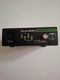 Vendo interfaccia MIDI USB Midiman / M-Audio MIDISPORT 2x2 Anniversary Edition, dispositivo affidabile progettato per collegare sintetizzatori, drum machine e strumenti MIDI hardware al computer. Dispone di 2 ingressi e 2 uscite MIDI, ideale per home studio, produzione musicale e setup con strumenti vintage. Molto apprezzata per la stabilità e la semplicità d’uso, perfetta per chi lavora ancora con hardware MIDI o vuole integrare strumenti analogici e digitali nel proprio setup. Perché la vendo: Non la utilizzo più e preferisco che venga usata da qualcuno che possa sfruttarla davvero. Condizioni come da foto. Ottima per musicisti, producer e appassionati di strumenti MIDI e hardware anni ’90 / 2000.