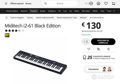 MIDITECH 2-61 BLACK EDITION USB master keyboard with 61 full size keys, pitch bend and modulation wheel, LED display, 2x MIDI Out, USB bus-powered, connection for optional sustain pedal and power supply