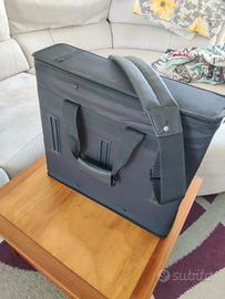 Custodia morbida da 19" 2U Coperchio con cerniera anteriore e posteriore Profondità di installazione: 41 cm Grande tasca esterna Dimensioni della tasca esterna: 315 x 265 x 30 mm Dimensioni esterne: 500 x 520 x 140 mm Peso: ca. 3,2 kg Include viti per rack Maniglie e spallaccio