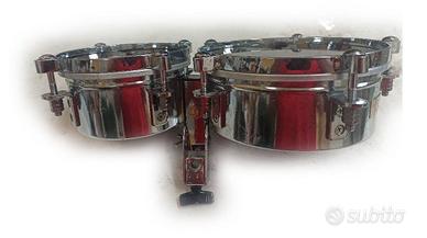 MINI TIMBALES : coppia di piccoli tamburi metallici dal suono molto aperto squillante. Fusti in Acciaio cromato delle dimensioni:altezza 8 cm diametro 8”(20cm) e 6”(15 cm)