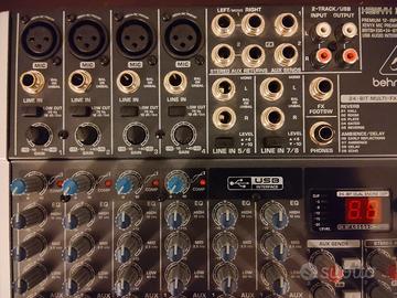 4 ingressi microfonici con taglio basso a 75 Hz, EQ a 3 bande, compressore a una manopola e alimentazione phantom a 48 volt commutabile