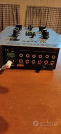 Mixer audio a due canali con 2 ingressi stereo, ingresso microfono e uscita cuffie. Ideale per locali e in generale per negozi dove si suona musica.