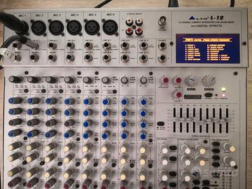 Per sfoltimento strumentazione, musicale vendo Mixer analogico Alto mod.L12 con numerosi effetti digitali, in ottimo stato e perfettamente funzionante. Se richiesto per completare l'impianto audio, sono disponibili anche due casse attive Samson mod. Live 615 da 300 W cad. (vedi nei miei altri annunci). Tel. 3494206273