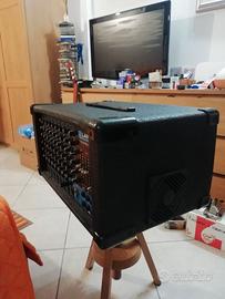 Laney Theatre 8300 . Ottimo Mixer/amplificatore PA a 8 canali Ingressi XLR/TRS a 8 canali con controllo guadagno, controlli EQ alti e bassi, invio monitor, invio riverbero e invio FX ausiliario ciascuno. Ingresso stereo/CD EQ grafico a 5 bande, con master volume, livello FX, livello di riverbero, volume monitor e volume ingresso nastro. Prese TRS: telecomando riverbero, uscita slave, ingresso amplificatore di potenza, ingresso ausiliario, uscita effetti e uscita monitor Uscite master a 2 canali XLR/TRS