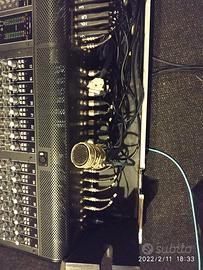 Vendo per inutilizzo (a malincuore) pacchetto composto da : Mixer analogico Meckie Onix3280 48 canali reali, con rack effetti plug & play contenente: Behringher Autocomp, equalizzatore Alesis MEQ230, Behringher Mini FEX 800, Viscount Gammaverb, Behringher Composer, Yamaha SPX 990, lettore cd/usb/mp3 Dap Audio. Il rack è cablato e collegato con multipolare plug & play, insert compresi. Il tutto in perfette condizioni utilizzato solo una decina di volte. Il mixer monta pre/eq Perkins Premium che offrono un suono di altissima qualità, eccezionalmente morbido, una gamma di dinamica e trasparenza maggiori rispetto a qualsiasi altro preamplificatore microfonico sul mercato. (Informazioni specifiche si trovano facilmente on line). Il mixer è completo di fly case professionale rinforzato e carrellato. (all'interno piccolo supporto costruito a misura molto comodo nei live per appoggiare un lettore od altro materiale) Cavo multipolare MPM da 35 m. 32/8 canali a frusta staccabile con connettore militare professionale, ciabatta fissata su rullo, tutta con connettori doppi bilanciati XLR/Jack. Dato il peso e dimensioni preferisco ritiro a cura dell'acquirente, sono disponibile per ev. consegna a domicilio con costo da concordare a parte. Pagamento esclusivamente con bonifico bancario o paypal . Massima serietà. Il prezzo non è trattabile ed è riferito al lotto completo, (per vendite separate i prezzi sono altri) no perditempo, scambi o permute, no offerte non è un'asta, non rispondo ad affaristi o a commenti fuori luogo. Se l'annuncio è visibile significa che il prodotto è disponibile quindi non scrivetemi per chiedermelo e poi sparire. Solo seriamente interessati Grazie