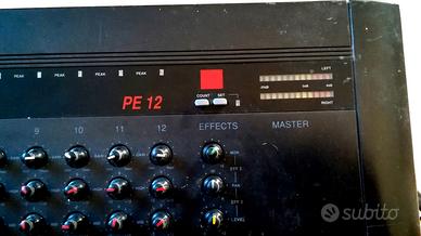 Vendo mixer audio della FBT mod. PE12 perfettamente funzionante, con 12 ingressi MICROFONICI (XLR) e LINE (jack 6,3), con uscita per amplificatore/casse amplificate e uscita MONITOR. Dotato di EFFETTI e regolazione di alti, medi e bassi per singolo canale. Uscita per CUFFIE. In buone condizioni generali, con segni di usura dovuti al passare del tempo.