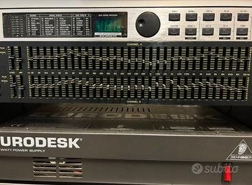 Mixer Behringer 24 canali, equalizzatore Yamaha doppio canale 32 bande, effetto Virtualizer DSP 1000, in ottime condizioni.