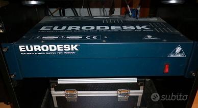 Vendesi mixer analogico Behringer Eurodesk MX9000: 24 canali ognuno commutabile in MIC/LINE e dotato del relativo percorso MIX B (TAPE RETURN), per un totale di 48 canali (24 principali+24 "in linea"! Ognuno dei 24 canali principali offre ingressi microfonici e di linea bilanciati, preamplificatore microfonico, pad, insert ed un equalizzatore a 4 bande con due bande medie semiparametriche, 15 dB di boost/attenuazione più filtro low-cut, fader da 100 mm. Sono disponibili 6 mandate ausiliarie (pre/post commutabili in coppia), con pan-pot, funzioni solo e mute. Il percorso di ritorno del MIX B/tape presenta un'equalizzatore dedicato shelving a 2 bande, controlli pan e level, funzione mute e accesso alle mandate Aux da 3 a 6.