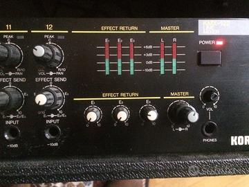 Vendo mixer Korg KMX 2 unità rack, 12 canali con ingressi anteriori e posteriori, 3 mandate effetti e controlli singoli per ogni canale. Regalo a chi acquista un flight case rack per 6 moduli, molto robusto con aperture anteriore e posteriore