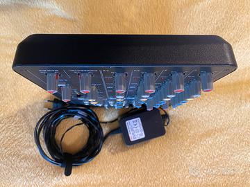 L'F62X è un mixer a 6 canali, un mixer professionale compatto che offre grande qualità e maggior affidabilità rispetto al passato. Questo dispositivo assicura un suono lineare, accurato e naturale ed è ideale per concerti, registrazioni e installazioni PA fisse. Il mixer ha due canali di ingresso mono (con preamplificatori microfonici ultra silenziosi e alimentazione Phantom +48 Volt) provvisto di EQ a 3 bande per i controlli Hi, Mid e Low con connettore XLR e jack 1/4" e 2 canali di ingresso stereo provvisti di EQ a 2 bande per i controlli Hi e Low con connettori jack 1/4". Sono presenti controlli per 1 Aux, indicatori visivi a 4 LED ed ingresso 2-track-in rca assegnabile al Main Mix, alle uscite Control Room/Phones. Il controllo del volume è di tipo rotativo su tutti i canali. Caratteristiche Risposte in frequenza: 10Hz - 55KHz, +/-3dB Distorsione Armonica Totale (THD+N): <0,03% at +0dB, 22Hz--22KHz Mic: 2 Gain range: 0dB - 50dB Phantom Power: +48V Mono Line: 2 Stereo Line: 2 2 Track: Yes Stereo Return: Yes Main Mix: 2x Jack bilanciati Control Room: 2x Jack bilanciati Aux Send: 1 FX Send:1 Cuffie: 1 Bande sui canale Mono: +/-15dB @12KHz; +/-15dB @2,5KHz; +/-15dB @80Hz Bande sui canale Stereo: +/-15dB @12KHz / +/-15dB @80Hz Aux: 1 FX: 1 Preset: Warm hall, Bright Hall, Warm Room, Bright Room, Vocal, Plate, Stereo Delay, Rev+Delay, Rev+Chorus Alimentazione: 230VAC ~50/60Hz 1000mA Assorbimento: 17W Cabinet: ABS Colore: Charcoal Grey