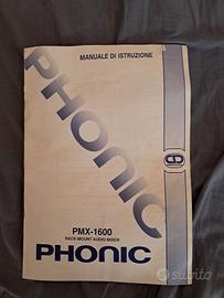 MIXER PHONIIC 16 CANALI CON BOSS DIGITAL MULTI ECHO RE.1000 E RACK, CON I RELATIVI ALIMENTATORI, TUTTO COLLEGATO E PRONTO ALL'USO. LE MANOPOLE FADER (CIOE' QUELLE DEL VOLUM DEL CANALE SINISTRO E DESTRO DEL VOLUME) SONO STATE SOSTITUITE CON DUE MANOPOLE DI COLORE BIANCO.INCLUSO MANUALE DEL MIXER.