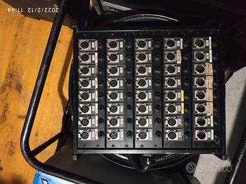 Vendo per inutilizzo (a malincuore) pacchetto composto da : Mixer analogico Meckie Onix3280 48 canali reali, con rack effetti plug & play contenente: Behringher Autocomp, equalizzatore Alesis MEQ230, Behringher Mini FEX 800, Viscount Gammaverb, Behringher Composer, Yamaha SPX 990, lettore cd/usb/mp3 Dap Audio. Il rack è cablato e collegato con multipolare plug & play, mandate, ritorni ed insert compresi. Il tutto in perfette condizioni utilizzato solo una decina di volte. Il mixer monta pre/eq Perkins Premium che offrono un suono di altissima qualità, eccezionalmente morbido, una gamma di dinamica e trasparenza maggiori rispetto a qualsiasi altro preamplificatore microfonico sul mercato. (Informazioni specifiche si trovano facilmente on line). Il mixer è completo di fly case professionale rinforzato e carrellato. (all’interno piccolo supporto costruito a misura molto comodo nei live per appoggiare un lettore od altro materiale) Cavo multipolare MPM da 35 m. 32/8 canali a frusta staccabile con connettore militare professionale, ciabatta fissata su rullo, tutta con connettori doppi bilanciati XLR/Jack. Dato il peso e dimensioni preferisco ritiro a cura dell’acquirente, sono disponibile per ev. consegna a domicilio con costo da concordare a parte. Pagamento esclusivamente con bonifico bancario o paypal . Massima serietà. Il prezzo non è trattabile ed è riferito al lotto completo, (per vendite separate i prezzi sono altri) no perditempo, scambi o permute, no offerte non è un'asta, non rispondo ad affaristi o a commenti fuori luogo. Se l'annuncio è visibile significa che il prodotto è disponibile quindi non scrivetemi per chiedermelo e poi sparire. Solo seriamente interessati Grazie
