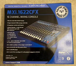 Vendo per cambio strumentazione. Perfetto, tenuto sempre in sala prove. Completo di scatola e custodia. La nuova serie MXI CFX rappresenta il top della qualità e delle funzioni nel suo segmento. Con 15 fader e fino 6 ingressi microfonici esso è l’ideale per spettacoli dal vivo, studio di registrazione e applicazioni generali PA. La Linea include anche un multi effetto digitale a 24 bit con 100 preset e una serie di Compressori sui canali microfonici. C’è un equalizzatore a 3 bande con medi parametrici o a 4 bande sui canali stereo. Sono disponibili ingressi insert e uscite separate Mix, Group e Control Room per il funzionamento in diverse configurazioni. Ideale per piccoli concerti e la registrazione. 8 mono inputs withXLR and Balanced TRS jack + 2 additional XLR mono inputs 4 Stereo inputs with Balanced TRS jack 8 compressors on MIC Inputs 3 band EQ with parametric mid-frequencies on all mono inputs andLo cut 3 Aux sends (Aux 1-2 Pre-Post switchable) Mute, Solo, 2-Track, Control Room, Phantom 48V functions 4 Subgroups 24 bits internal EFX processor Integrated USB media Player 15 Faders