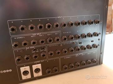 Vendo mixer rack yamaha MV1602, sicuramente necessita di una revisionata perché gli slider del volume generale e dei singoli canali non fanno contatto bene. Per il resto funziona tutto, sia i potenziometri dei singoli canali che i pulsanti. Quando non l'ho utilizzato, l'ho sempre conservato in modo da evitare la polvere. In ogni caso il mixer è di buona qualità e se sistemato sicuramente tira fuori un bel segnale.