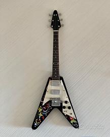 Vendo modellino in scala della Gibson Flying V di Jimi Hendrix con decorazione psichedelica come quella usata nel video di Burning of the midnight lamp.