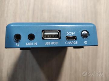 Caratteristiche Principali Generatore Sonoro: Dispone di 128 suoni General MIDI (GM) standard di alta qualità. Polifonia Massima: Fino a 64 note. Portabilità: Include una batteria al litio ricaricabile integrata da 2500 mAh, che può alimentare anche tastiere MIDI esterne collegate via USB. Design USB Host: La porta USB integrata funge da host, permettendo di collegare direttamente una tastiera MIDI USB senza passare da un PC. Specifiche Tecniche Audio: Campionamento a 16 bit / 48 kHz con filtraggio digitale a 24 dB. Effetti: Controlli integrati per Volume, Program (scelta strumento) e Riverbero. Display: Display a LED blu a 3 cifre che mostra i valori correnti di volume e strumenti. Connettività: Uscita Audio: Jack stereo da 3,5 mm per cuffie o altoparlanti esterni. MIDI IN: Ingresso tramite jack da 3,5 mm (richiede adattatore MIDI DIN a 3,5 mm). USB Host: Porta USB tipo A per il collegamento diretto di controller MIDI. Ricarica: Porta Micro-USB per alimentazione e ricarica della batteria. Dimensioni e Peso Dimensioni: Circa 8,0 x 10,7 x 2,2 cm. Peso: Circa 195 grammi Vendita di presenza con verifica per garanzia sicurezza in Catania