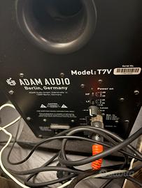 vendo coppia monitor audio Adam T7V con leggeri segni estetici di usura dati dal tempo ma perfettamente funzuonanti. Monitor stupendi tra i migliori in questa fascia di prezzo per come suonano. Vendo insieme a scatola orginali, cavi audio e assorbitori(quelli in foro) per monitor orginali Adam dal valore di 30 euro. no spedizione.