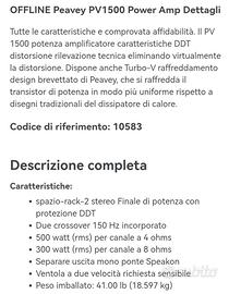 MONITOR PEAVEY PV 15 E AMPLIFICATORI PEAVEY 1500