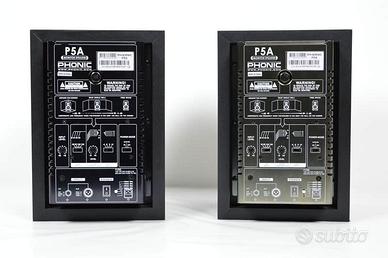 Vendo coppia di monitor da studio attivi Phonic P5A, woofer da 5", ideali per home studio, produzione musicale e ascolto accurato.