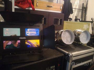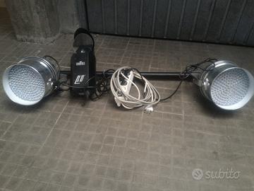 Vendo per inutilizzo impianto completo audio e luci per locali e piccole piazze. 2 casse attive Montarbo da 250 W RMS cadauna modello con cassa acustica in legno, un Sub woofer Montarbo BX 181A da 1000 w RMS con cono da 18,piu mixer e scheda effetti come da foto, cavi 220v,cavalletti per le casse, microfono sennaiser con cavo, più microfono radiofrequenza, impianto luci come da foto comprese di cavalletti,macchinetta fumo.