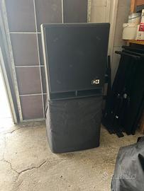 ULTIMO SCONTO.E POI LI TENGO. vendo a malincuore coppia di sub in ottime condizione tutto originale mai riparato perché usato poco , usa ancora l'amplificazione non digitale quindi 1000w veri lascio scheda , €1700,00 la coppiaCabinet: Compatto / Bass Reflex Risposta in Frequenza: 32Hz - 100Hz (-3dB) Sensibilità: 101dB SPL @1W/1m (half space) SPL max (half space): 132dB continui / 138 dB di picco Componenti (custom): 1 Woofer da 18" con magnete al neodimio (bobina da 4" ) Crossover elettronico stereo: 100Hz, 24dB/Oct Linkwitz-Riley Amplificatore integrato: MOSFET in classe AB controllata da 1 processore Potenza di uscita: 1000W 2 Ingressi bilanciati Neutrik Combo 2 Uscite bilanciate XLR (Link) 2 Uscite sbilanciate XLR (X-over) Materiale cabinet: Multistrato di betulla, verniciatura poliuretanica antigraffio Griglia di protezione in acciaio Alloggio per stativo, maniglie per il trasporto Dimensioni: 540 x 650 x 600mm Peso: 45kg INFO STEFANO 3-3-5-6-4-8-1-0-7-1prestazioni di questo genere non si trovano nei classe D