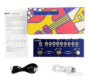 Multi-effetto "M-VAVE Cube Baby Bass" per basso elettrico, come nuovo nella sua confezione, con 2 cavi USB e manuale.