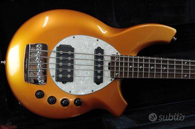 Music Man Bongo HS 5 corde,Basso Elettrico Attivo, 2 Slot Batteria 9v. Saponetta al ponte e singlecoil al manico. Crepe body posteriori della spessa Glassa (vedi foto) Perfettamente funzionante, strumento unico nel suo genere, suono eccezionale anche diretta da mixer senza amplificatore. Custodia semi rigida non originale. Set di corde nuove e tracolla in pelle cacao con strap lock silver.