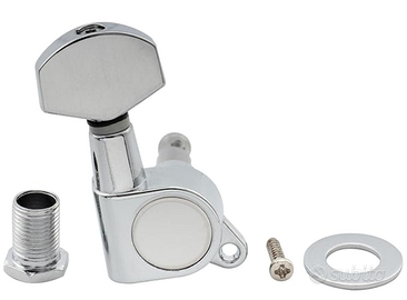 Musiclily Pro 6 in Linea Meccaniche per Chitarra Elettrica Stratocaster Telecaster, Cromato Adatto per peg fori standard da 10 mm (13/32 ") Lega di metallo, stile sigillato, pressofuso, rapporto di trasmissione 1:15 6 in linea set completo; include Dado, virola, viti Pacchetto incluso: 6 pezzi Perfettamente sigillato, mai usato