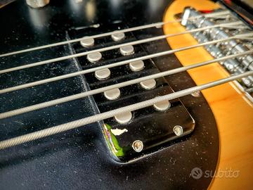 La cover del pickup è stata verniciata da un professionista, ma dopo anni di utilizzo presenta alcune imperfezioni superficiali nella zona di appoggio del pollice, ben visibili in foto. Si tratta di un difetto puramente estetico che non influisce sul suono né sul funzionamento dello strumento.