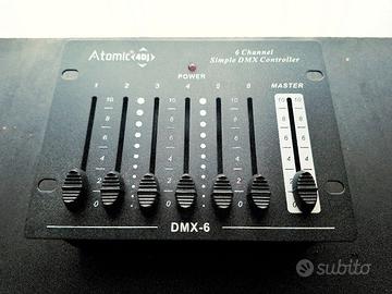- Atomic4DJ Control6, centralina DMX a batteria e a corrente con controllo manuale di 6 canali + 1 dimmer Master. Ideale per controllo luce PAR LED base o fontane SPARKULAR è compreso di batteria orginiale sony, alimentatore, scatolo.