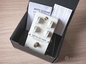 VENDO pedale effetto overdrive per chitarra Nemphasis White Scream. Condizioni estetiche eccellenti e perfettamente funzionante. Completo di scatola originale e documentazione. Consegna di persona (NO spedizione), pagamento in contanti. NON sono interessato a scambi/permute. NO PERDITEMPO! Componenti elettronici selezionati. True bypass. Completamente analogico. Jack input/output da 6.3 mm 1/4? posti lateralmente al pedale. Quattro controlli permettono la regolazione del gain, tono (bassi e alti) e del volume. Il LED indica lo stato di attivazione dell'effetto. Il LED indica lo stato di attivazione dell'effetto. Se la tensione di alimentazione è inferiore a 7.5V il LED non si accende rendendo indispensabile la sostituzione della batteria. Nessun click/led pop all'attivazione dell'effetto. Alimentazione 9 VDC attraverso batteria interna o alimentatore stabilizzato esterno. La sostituzione della batteria è possibile attraverso la rimozione delle quattro viti poste sul coperchio inferiore. Per un corretto funzionamento si consiglia di utilizzare batterie con tensione non inferiore a 8V. L'alimentazione esterna, con alimentatore stabilizzato è possibile mediante plug da 2.1mm con negativo centrale. Corrente assorbita 10 mA (max). Dimensioni (mm): 72 X 120 X 55 Peso (g): 250 (batteria esclusa).