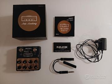 Vendo pedale Nux Amp Academy, simulatore di amplificatore e cassa fenomenale, come nuovo usato pochissimo. Insieme al pedale nella sua scatola originale aggiungo l'alimentatore che non era in dotazione ma che ho acquistato a parte. Possibile spedizione a carico dell'acquirente.