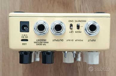 Vendo con scatola originale (senza alimentatore) in perfetto condizioni, usato pochissimo, preamplificatore per chitarra acustica NUX Stageman Floor con effetti digitali e looper integrato. Equipaggiato con un eq 3-bande con controllo speciale sui medi, notch filter regolabile e controllo gain. Gli effetti di Reverb e Chorus sono controllabili ognuno con un controllo dedicato che miscela in maniera automatica i vari parametri in maniera ottimale per un bilanciamento sempre perfetto. Il Chorus può essere utilizzato in modalità Freeze tramite pressione/rilascio del footswitch dedicato. L'ingresso può essere ottimizzato a seconda che si tratti di un Piezo/magnetico, mentre l'FX ne espande le opssibilità di utilizzo. Ma c'è di più: Stageman Floor può trasformarsi anche in un looper con 60 secondi di memoria e infinite sovraincisioni. Perfetto anche per strumenti come violino, mandolino, banjo e molti altri.