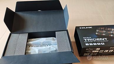 Trident è il modeler targato Nux che aggiorna l'algoritmo White Box a un nuovo livello: il 4K. La nuova piattaforma hardware ha due DSP, uno per gestire tutti gli effetti e l'altro per gestire l'algoritmo di amp modeling. Non solo: Trident utilizza convertitori A/D e D/A e circuiti analogici di qualità superiore per ottenere un suono chiaro con bassi livelli di rumore. 27 amplificatori con ingressi High/Low, 4 ingressi per cavi patch, switch per il voicing, numerose opzioni per la massima flessibilità. IR loader con 27 simulazioni cassa ad alta risoluzione + 4 microfoni con 3 posizioni ciascuno per scolpire al meglio la tua ripresa e possibilità di espandere la libreria con IR di terze parti su 32 slot aggiuntivi. E ancora sezione EFX completa a blocchi, un looper, numerose opzioni di connettività e un layout di controllo intuitivo per domare con facilità l'incredibile ventaglio di possibilità offerte in una macchina così compatta.
