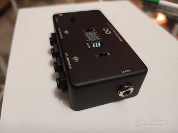 Vendo dispositivo looper MIDI a 2 loop, per aggiungere pedali singoli a sistemi MIDI. Con scatola originale. Ottime condizioni estetiche e funzionali, super compatto sta sotto la pedaliera (io l'avevo montata sotto una Rockboard Tres 2.3) Nota: Necessità di un controller midi per essere pilotato. True Bypass Stereo Looper For Effect Pedals Bypass switching via MIDI It can use between 1-8 MIDI channels to receive control signals. It can be controlled via program change (PC) or control change (CC) signals Mono and stereo signals can be processed variably. True bypass Status LEDs Metal housing Input and output: 6.3 mm Mono jacks (TRS) Send/return: 6.3 mm Mono jack (TRS) 5-Pin MIDI input Power supply via optional 9 V DC power supply unit 2.1 x 5.5 mm hollow plug, polarity (-) inside, not included in the delivery Passive operation possible without power supply: Status LEDs, BJF buffer and DC hollow plug outputs then without function Current consumption: max. 120 mA Dimensions (L x W x H): 68 x 125 x 32 mm Weight: 366 g