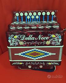 Organetto a 2 bassi marca DELLA NOCE modello "SUPER" colore rosso scuro perlato in tonalita' Re, oppure tonalita' o colore a scelta su ordinazione, in legno rivestito in celluloide.