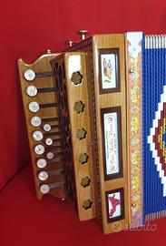 Organetto di dimensioni standard con voci in terza (3 voci ogni tasto) con cambiatono (registro).