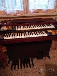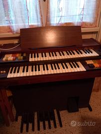 Organo a due tastiere Viscount color mogano con le seguenti dimensioni: - altezza 89 cm - profondita' massima 50.5 cm - larghezza 99 cm