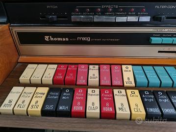 Vendo Organo elettronico Thomas con sintetizzatore Moog. il Moog è da sistemare. Pedaliera e Sgabello. Prezzo trattabile.