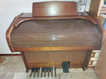 Organo Elka Artist 606 vintage anni 80, usato pochissimo e ottimamente conservato, doppia tastiera, pedaliera, registri tastiera superiore e inferiore, registri pedaliera, percussioni. Effetti sustain, vibrato, riverbero; trombone, tromba, sax, clarino, oboe, chitarra, chitarra hawaiiana, violino, flauto; batteria elettronica, accompagnamento automatico con piano, chitarra, fiati e basso.