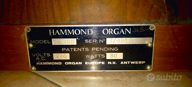 Vendo organo Hammond VE 400 con due tastiere e pedaliera. Lo strumento è in buone condizioni strutturali ma necessita di revisione su alcuni registri, completo di sedia con vano spartiti.
