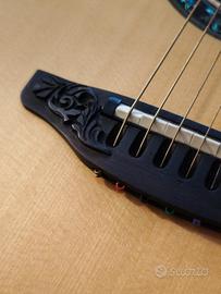Splendida Ovation a firma Al Di Meola. Un sogno di chitarra dalle caratteristiche a dir poco uniche. Infatti, oltre ai classici legni delle chitarre top di gamma (tavola in Stika AAA, ponte e tastiera in ebano), presenta un manico a 5 strati per una stabilità unica.