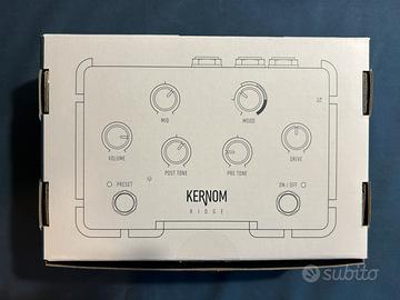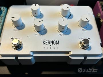 CALORE ANALOGICO CON CONTROLLI MIDI. Il Kernom Ridge è un overdrive analogico con una paletta di suoni molto vasta che vanno dal Boost trasparente fino a un suono fuzzoso molto pastoso. Il controllo delle frequenze prima e dopo la distorsione (PRE e POST), il controllo sui medi finali (MIDS) sono abbinati a due controlli particolari: la quantità di saturazione (DRIVE) e la tipologia (MOOD).