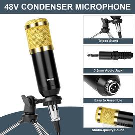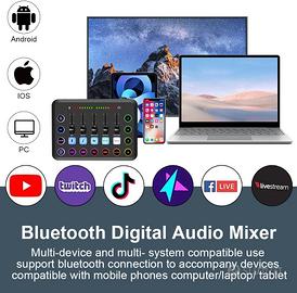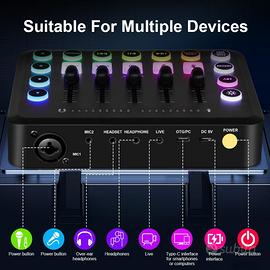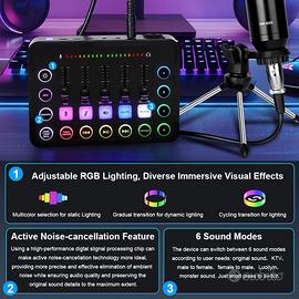 Pacchetto Attrezzatura Podcast Scheda Audio Live Interfaccia Audio USB C con Treppiede Microfono a Condensatore per Streaming live Youtube PC studio di Registrazione Trasmissione 📺 【Scheda audio professionale F11】 La nostra scheda audio live è l'ultima scheda audio live F11 con doppio chip DSP importato, accompagnamento wireless Bluetooth, cinque pulsanti per una regolazione precisa, controllo intelligente avanzato della luce, corpo grande, aspetto colorato, delicato, chiaro e un suono profondo che raggiunge un vero effetto da studio. 6 modalità scena e 4 effetti sonori speciali per la tua creazione, completamente compatibili con Android, iOS, WINDOWS. 🎵 【Doppio chip DSP importato】 Questa scheda audio dal vivo è dotata di doppi chip di riduzione del rumore DSP integrati, funzione di riduzione del rumore con un clic, alta sensibilità stabile e chiara per evitare l'influenza del rumore corrente e riduzione intelligente del rumore che garantisce che la tua voce sia catturato chiaramente, garantendo una qualità del suono senza perdite anche in ambienti rumorosi e offrendo ai cantanti un suono chiaro e privo di rumore Fornisce spettacoli vocali. 🎧【Multifunzione】Questa scheda audio è compatibile con due trasmissioni in diretta su telefoni cellulari, due trasmissioni in diretta con microfoni e trasmissioni in diretta miste su telefoni cellulari. Supporta la ricarica e l'accompagnamento durante la trasmissione Riverbero, microfono, effetti, monitoraggio e registrazione possono essere controllati in modo indipendente. Offre un'eccellente qualità del suono e dispone di manopole di regolazione per ottimizzare la voce e gli effetti sonori. 🎙️【Eccellente qualità del suono】Il microfono abbinato a questa scheda audio è durevole e ideale per gestire elevati livelli di pressione sonora. Il microfono a condensatore registra un suono ricco e denso dalla sorgente direttamente davanti al microfono e fornisce un segnale audio chiaro per mostrare ciò che viene riprodotto.