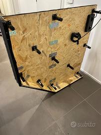 Vendo palchetto per piccola batteria, dj set, impianto audio o arredamento. Realizzato a mano in obs 20 mm, ricoperto con moquette. Dotato di presa multipla a scomparsa, robustissimo. 126x126x15 cm. Solo consegna a mano a Vicenza e provincia.