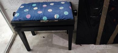 Panca per pianoforte nera. Usata ma funzionante. Va ricoperta la seduta perché la pelle si è rovinata.
