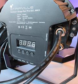 Modello OUTDOOR STAGE PAR PRO II Alloggiamento robusto in alluminio pressofuso Sorgente luminosa: 12x 8 watt 4in1 LED RGBW Angolo di emissione: 25°controllo: DMX512 (1/4/5/7 canali), master/slave, programmi interni e colori statici Protezione: IP65