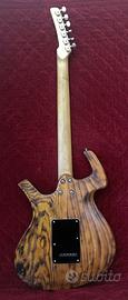 Copia Parker in stile P38. Corpo in frassino unico blocco finitura Shou Sugi Ban. Manico acero, tastiera palissandro. Configurazione Strat. 1 PU Seymour Duncan al ponte e 2 Duncan Design (Central e Neck). Meccaniche autobloccanti Sperzel (USA). Ponte tremolo a 2 Pivot.