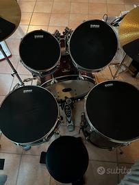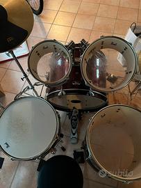 Vendo Pearl Roadshow colore rosso causa trasferimento, la batteria ha qualche anno ed è stata usata, però in buone condizioni e ottima per prove o allenamento ed è così composta: